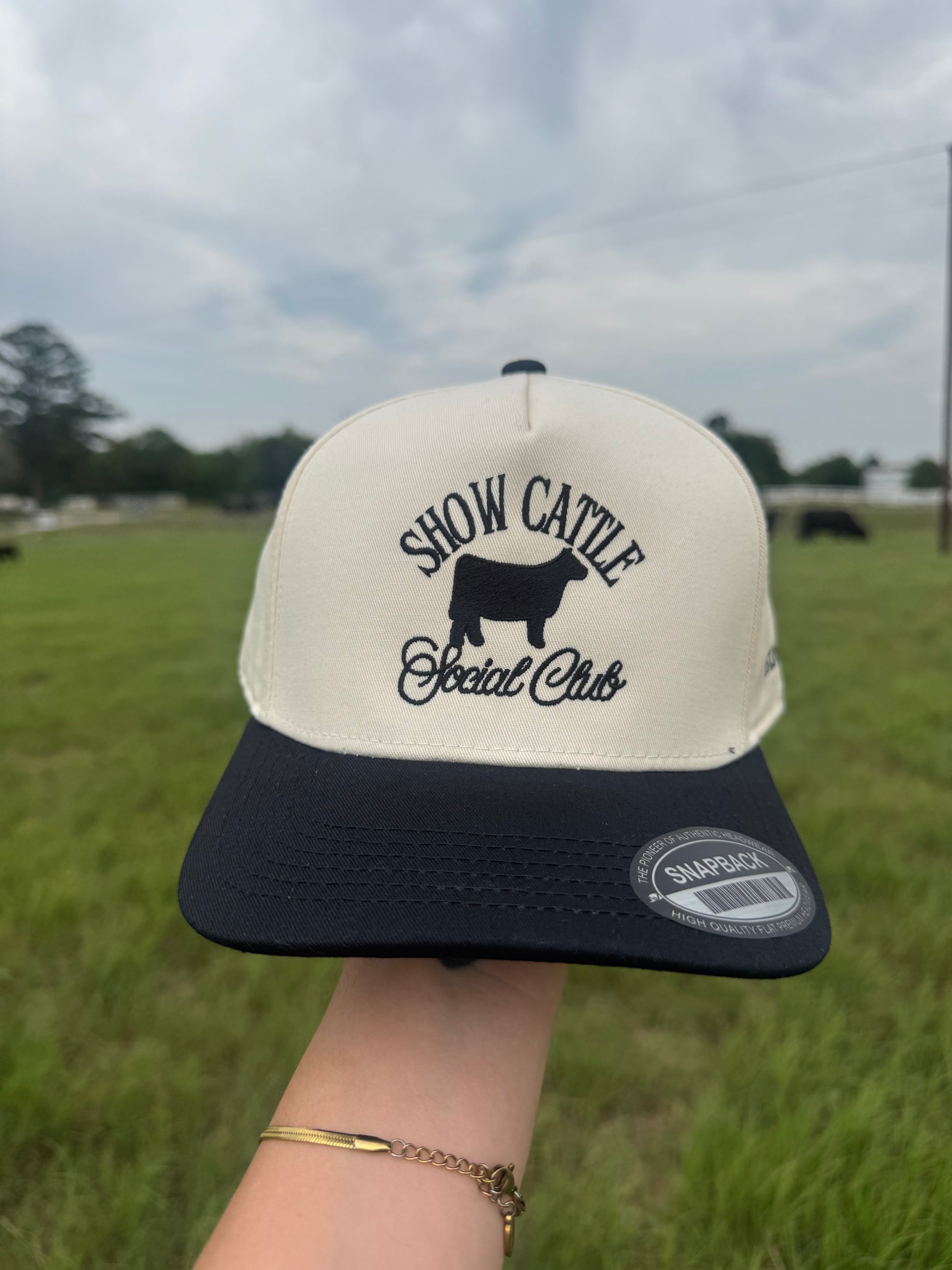 Join the cattle show community with our stylish trucker hat! Designed for comfort and style, this hat features the Show Cattle Social Club logo, perfect for showcasing your love for all things cattle. Stand out at shows, events, or just out and about with this must-have accessory!